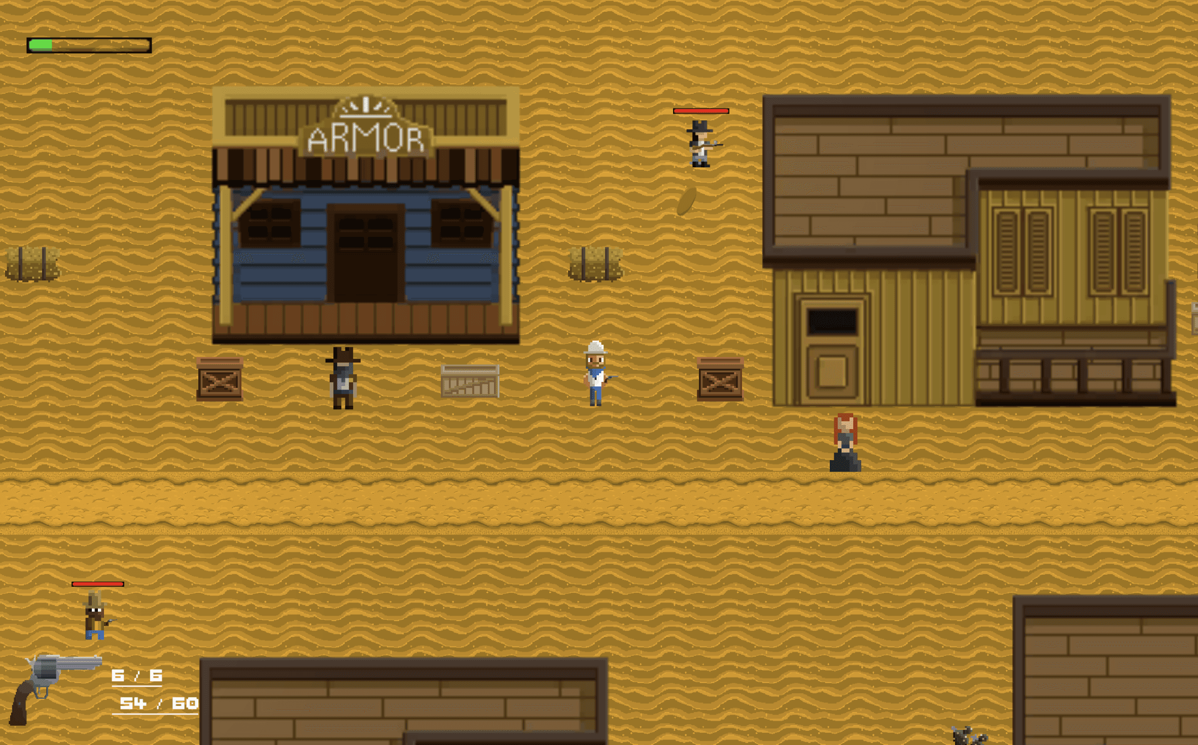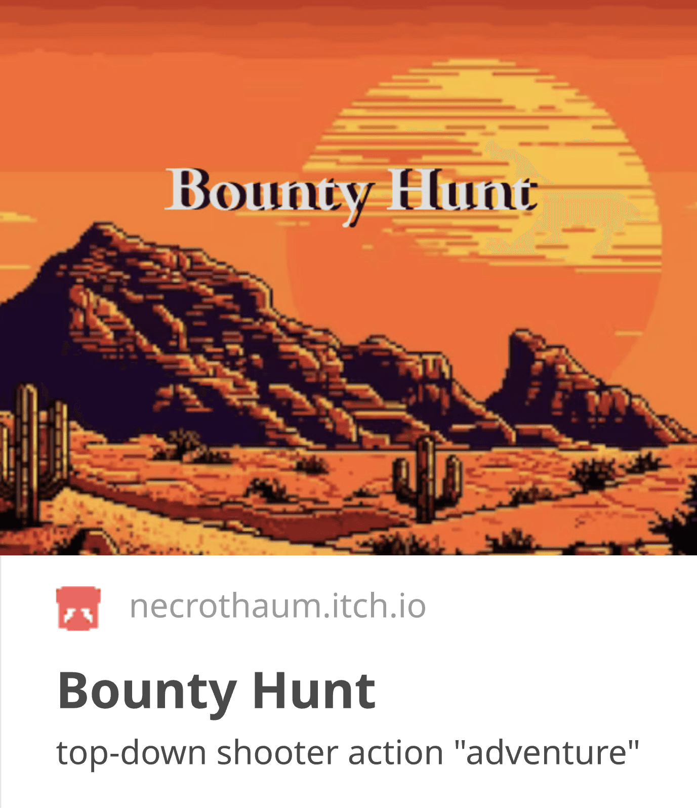 Bounty Hunt is a 2D, pixel, shooter/adventure game set in the Wild West. It follows the main character's journey of finding his family and getting rid of enemies.