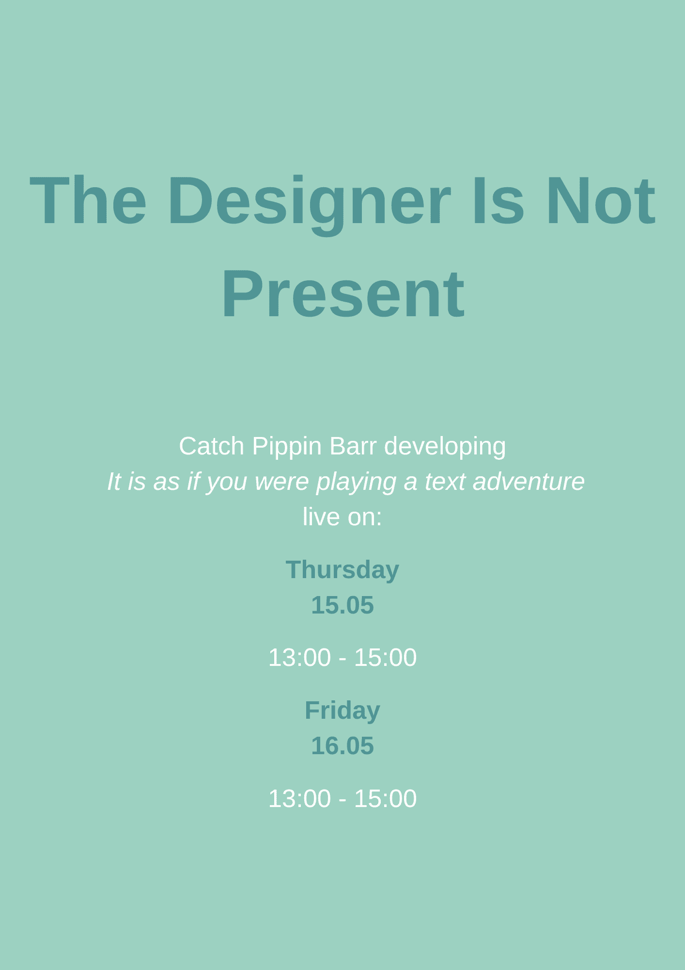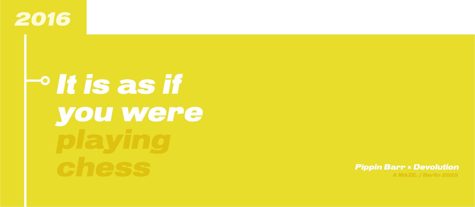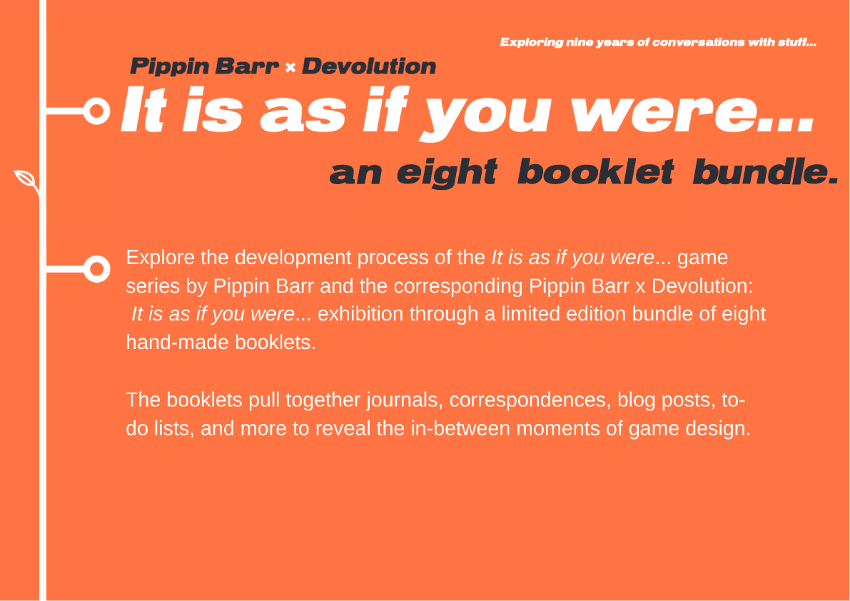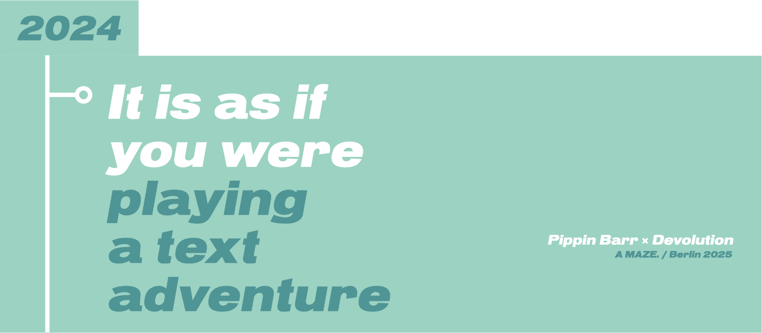 I have joined Devolution in December 2024, working with the Social Media & PR Team. In May 2025 I took the role as the Visual Coordinator for the It is as if you were… exhibition at the A.MAZE Festival in Berlin. The exposition showcased the games created by Pippin Barr. My tasks involved preparing visual boards, poster and contributing to the overall visual identity of the project.